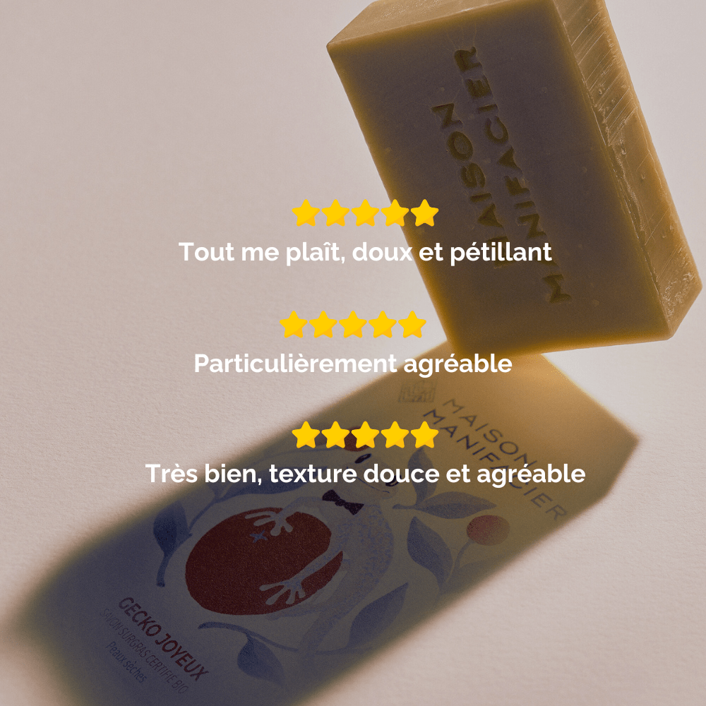Gecko Joyeux – Savon orange douce & citron pour peau sèche